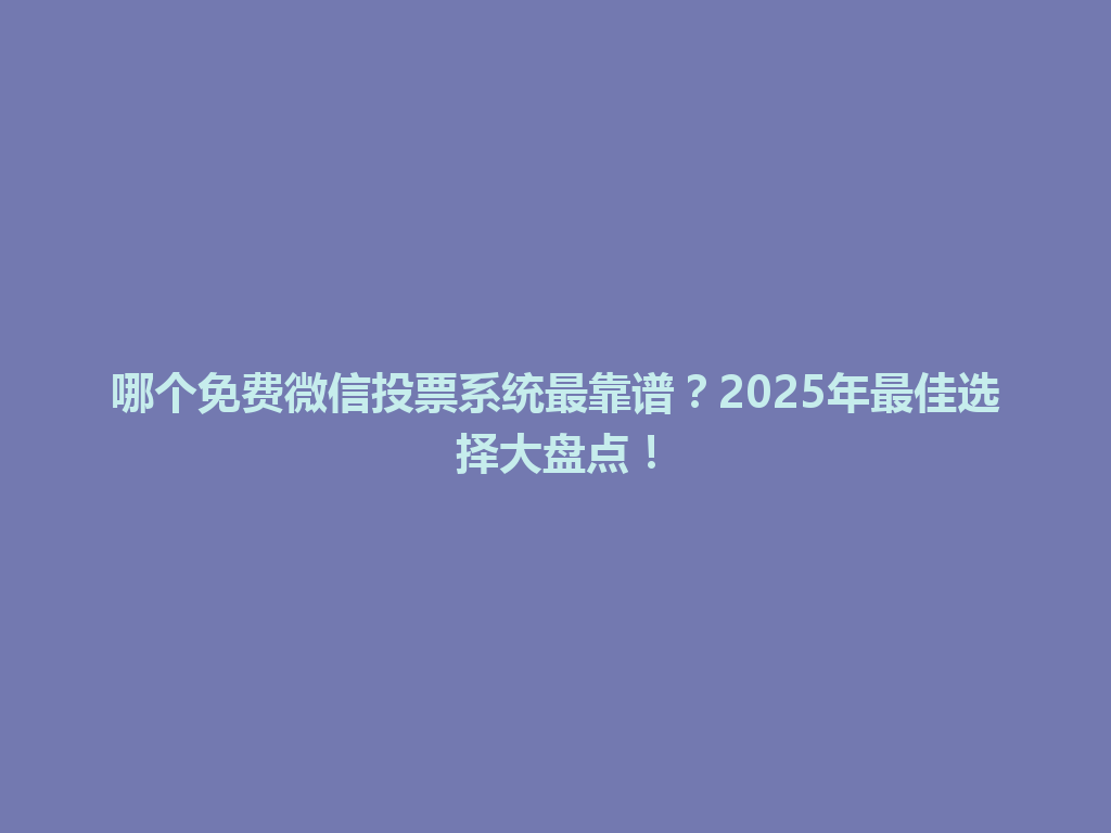 紫云苗族布依族自治县哪个免费微信投票系统最靠谱?2025年最佳选择大盘点!